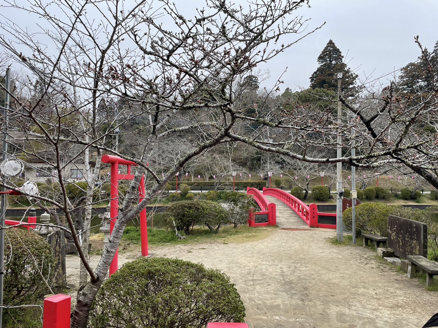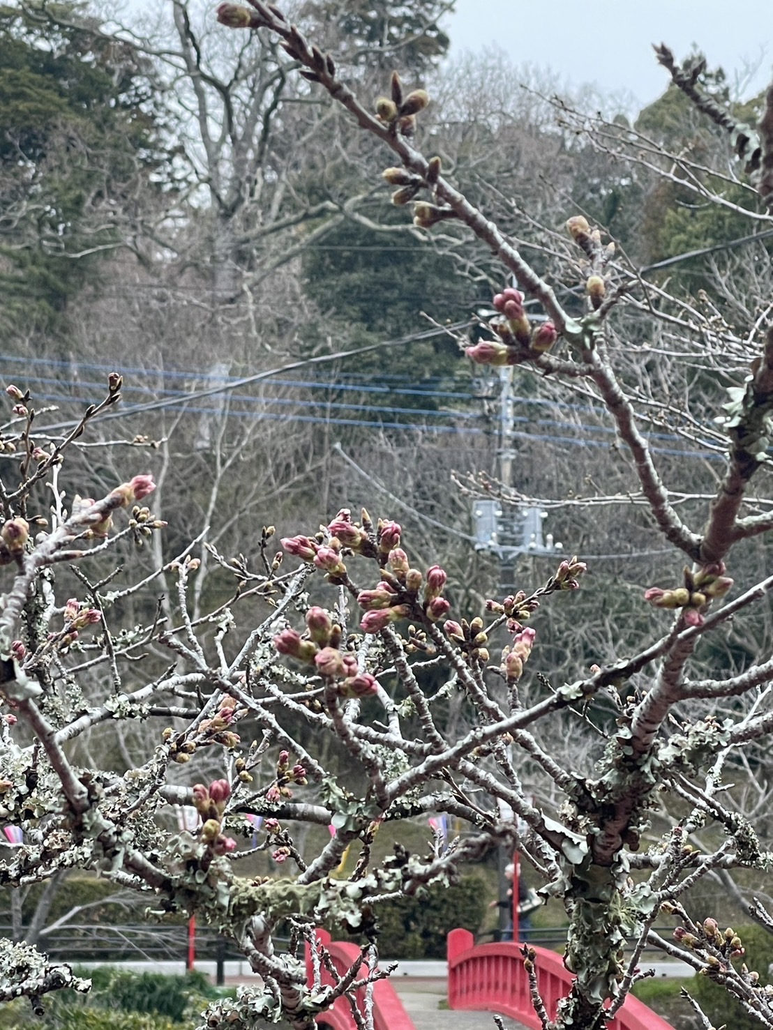 弁天島の標本木はすでに5部咲きですが北側は未だ咲いていません。一方南部は数本がすでに5部咲きとなっています。不思議です。
