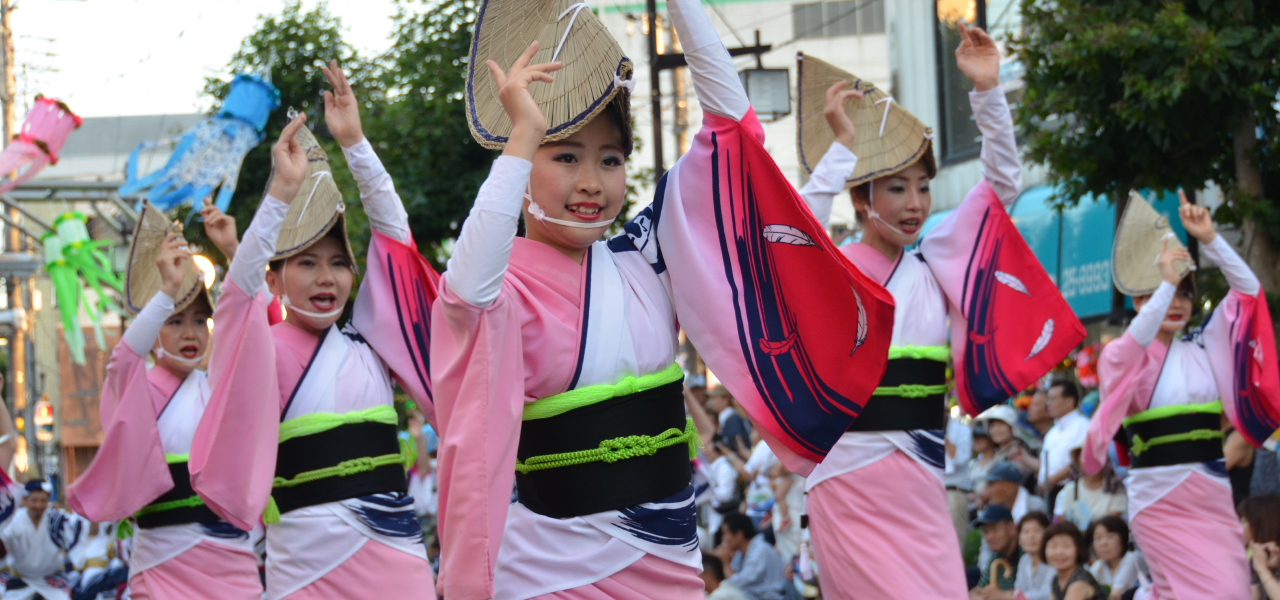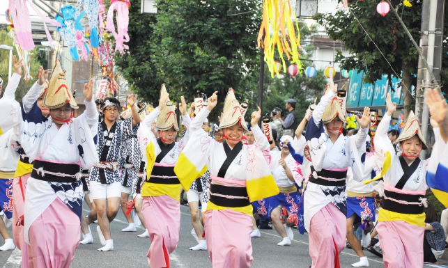 茂原七夕まつりでは、およそ1,000名の踊り手が参加して見事なおどりを披露します。一糸乱れぬ動きはまさに壮観のひとことです。